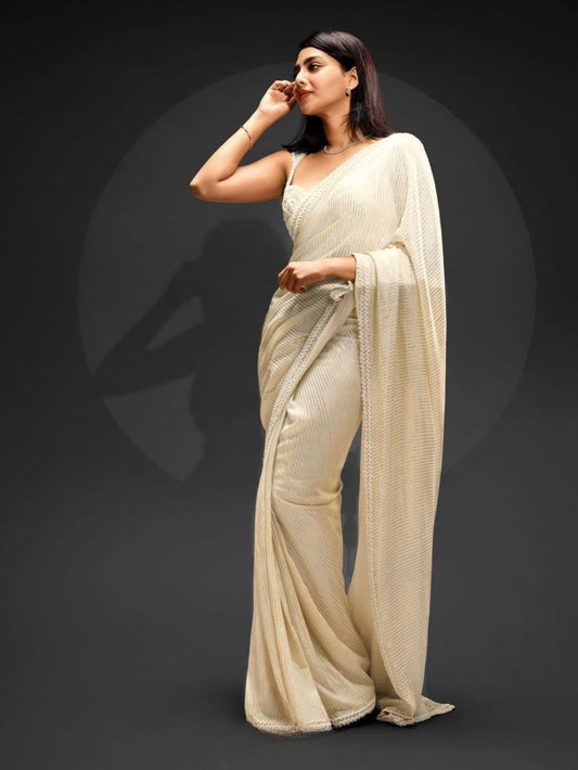 Celebrity Inspired Mirror Embroidery Saree for Women