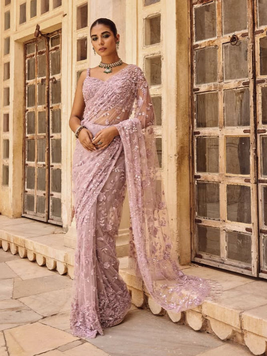 Mauve Faux Georgette Sequin Saree Bollywood Celebrity Saree for Women's