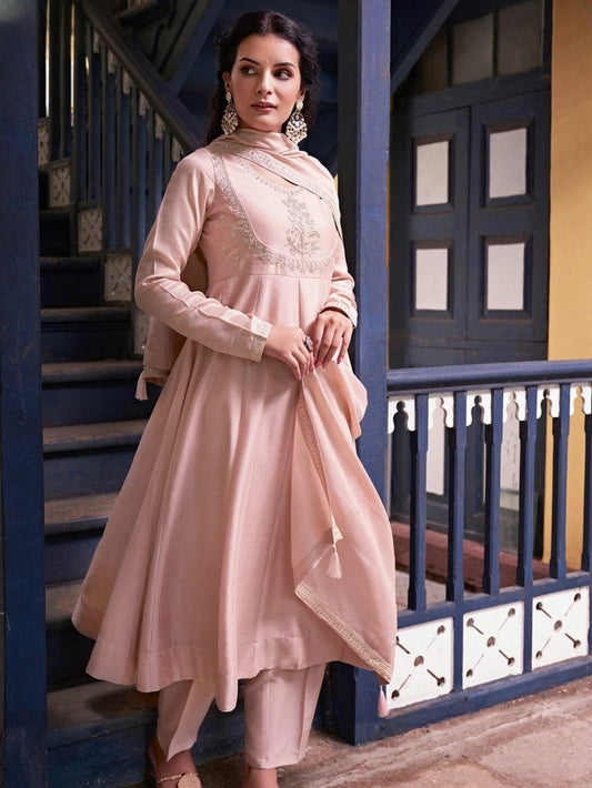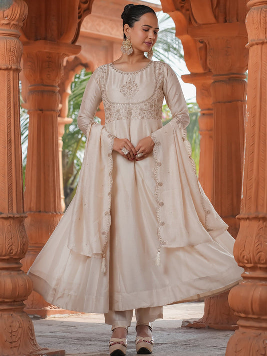 New Arrival Cream Color Vichitra Silk Embroidered Kurta Set For Women's