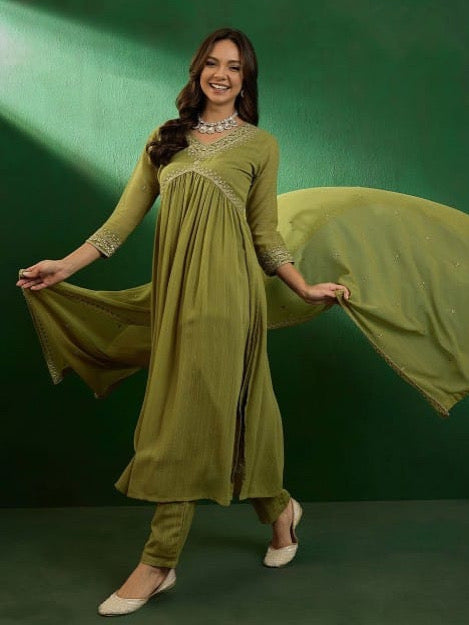 Reyon Slub Kurta Set with Nazmin Dupatta – Elegant Ethnic Wear for Women's
