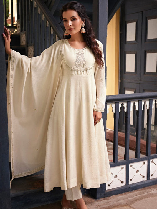 Elegant Off-White Kurta Set in Viscose Rayon with Chinon Dupatta