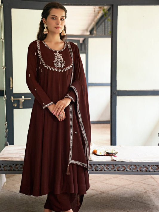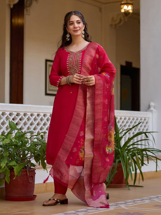 Women's Heavy Viscose Kurta Set with Chanderi Embroidery & Printed Organza Dupatta
