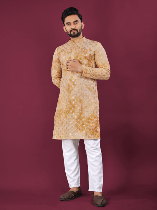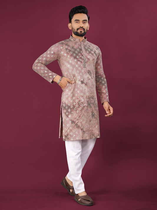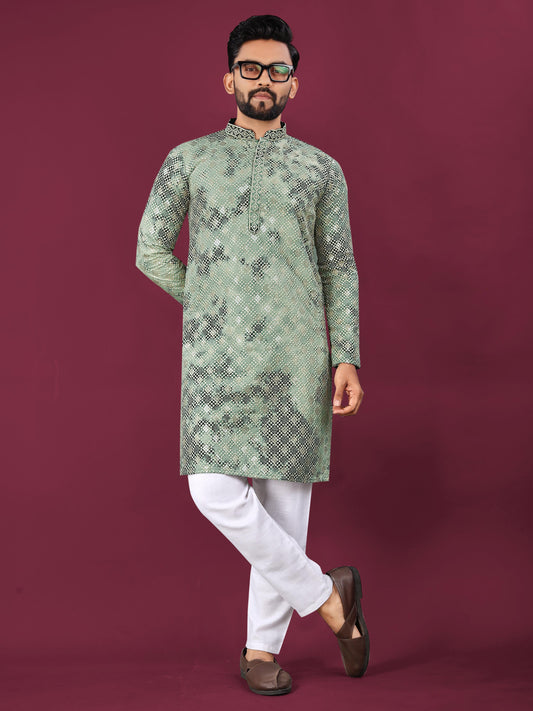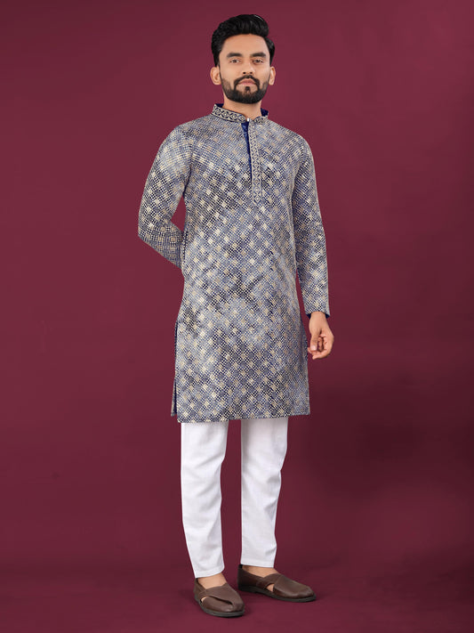 Men's Heavy Viscose Silk Embroidered Sequence Kurta with Cotton Pajama