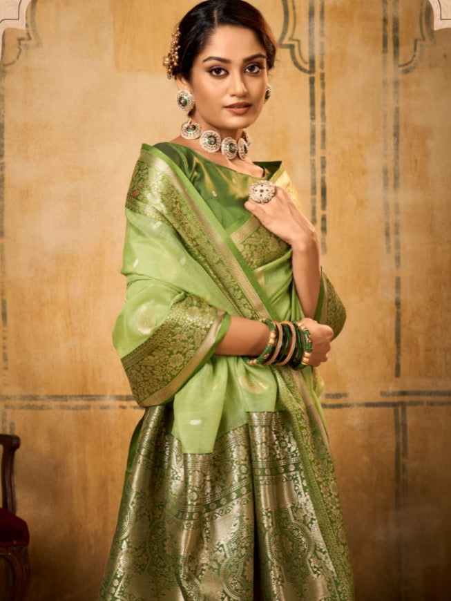 Elegant Petals Banarasi Tissue Saree with Rich Contrast Border For Women's