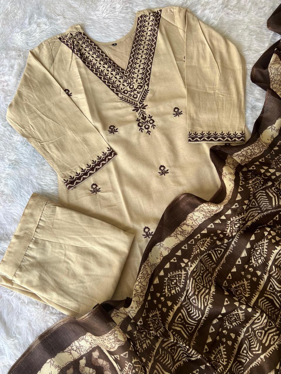 Khadi Cotton With Beautiful Embroidery Kurta Set For Women
