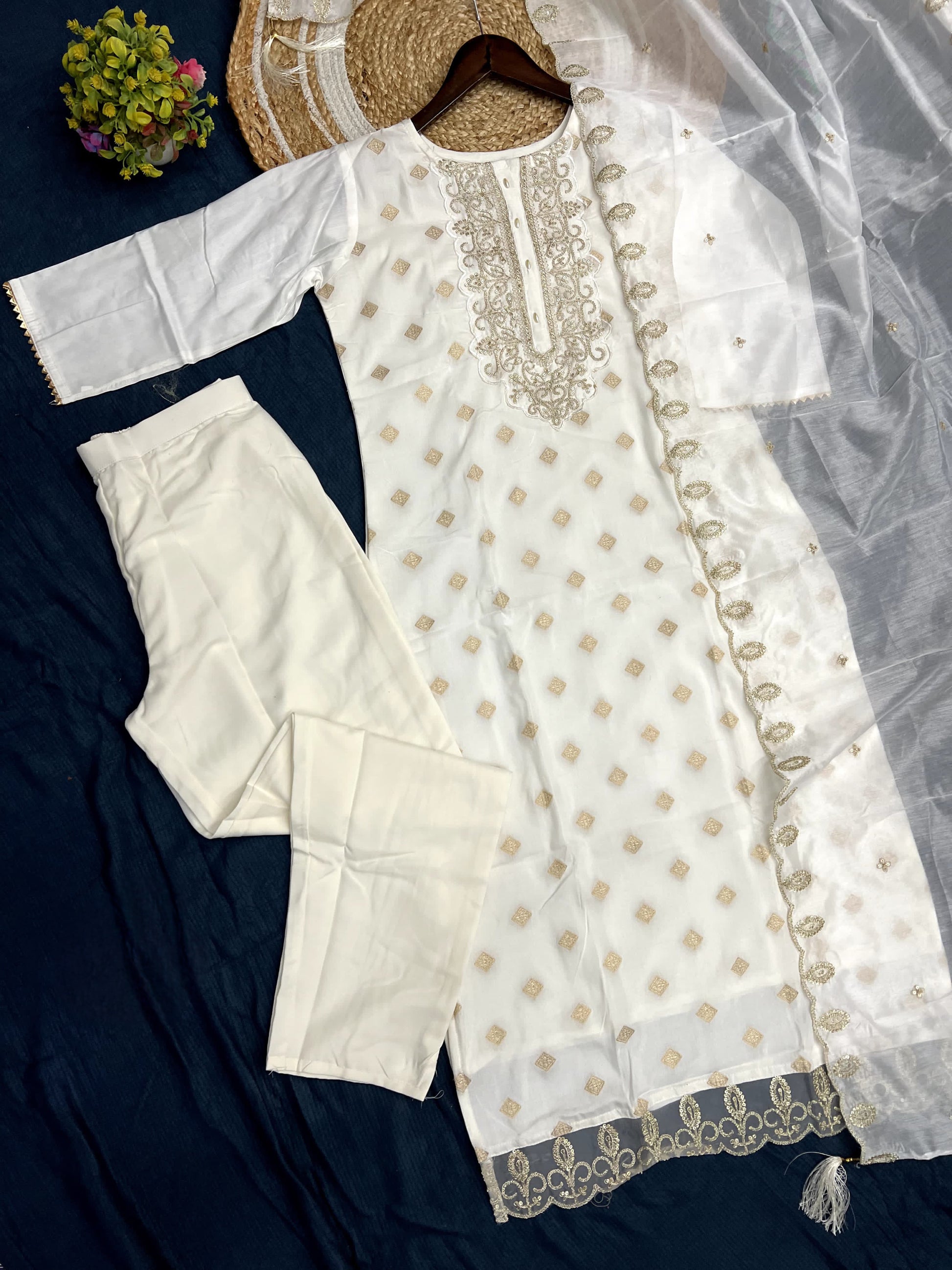 New Collection Heavy Viscose Jacquard Embroidered Kurta Set For Women