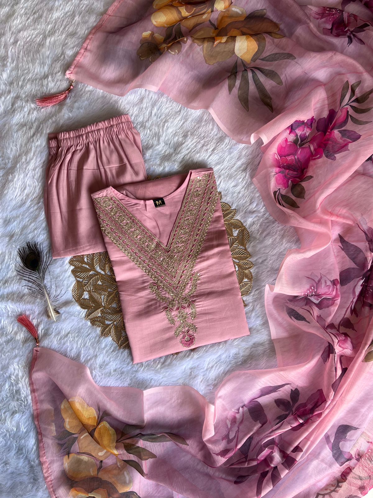 Product Description Of Pink Chanderi Silk Kurta Set For Women