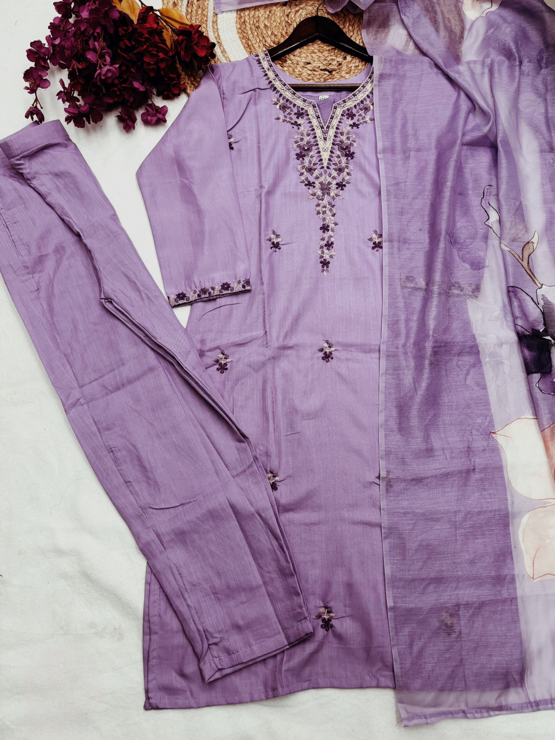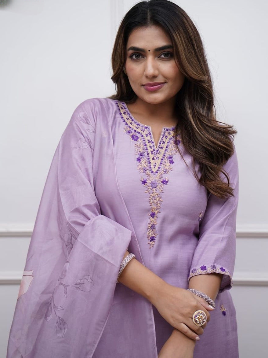 Pulmp Soft Reyon Slub Embroidered Kurta Set with Chanderi Cotton Dupatta – Women’s Ethnic Wear