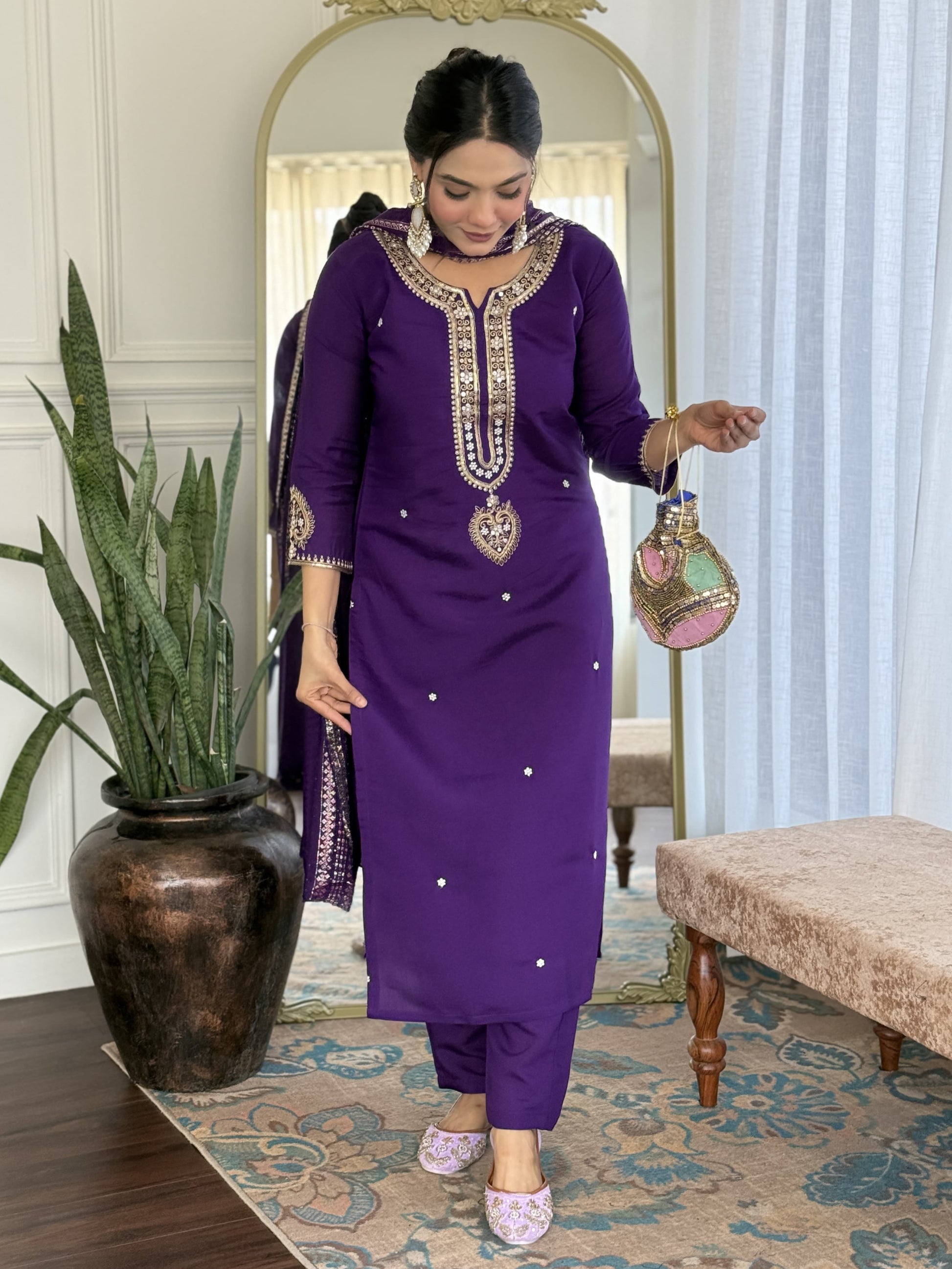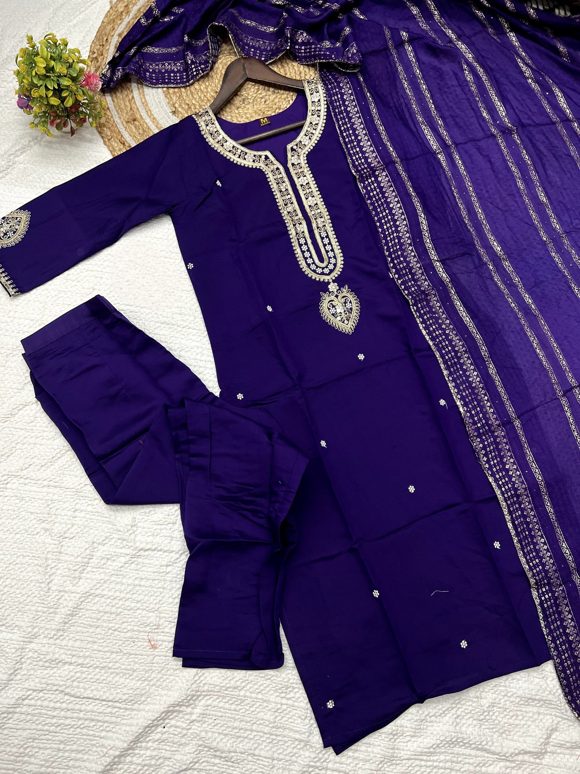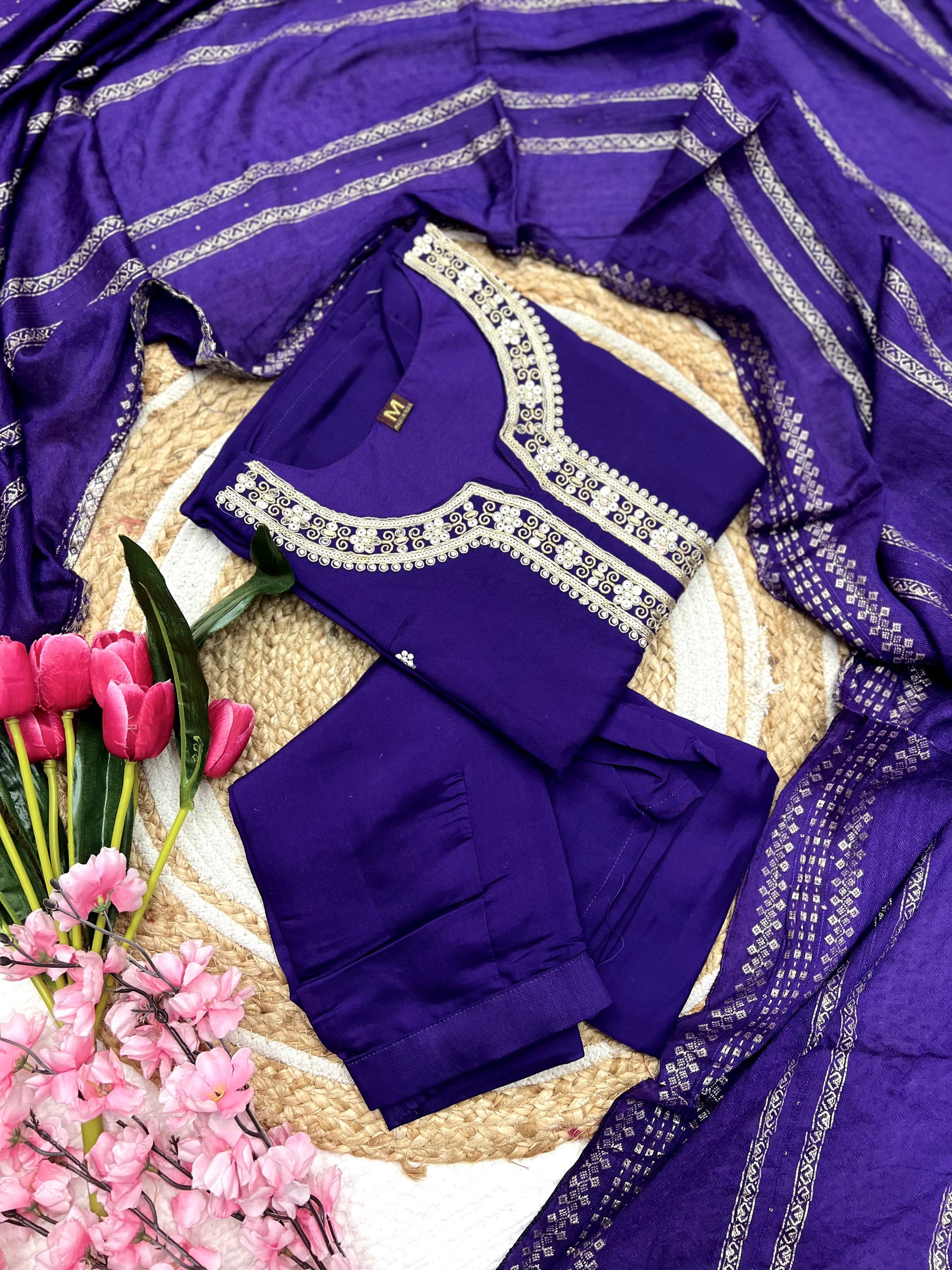 Timeless Beauty Viscose Chanderi Set Paired With Jacquard Dupatta For Women