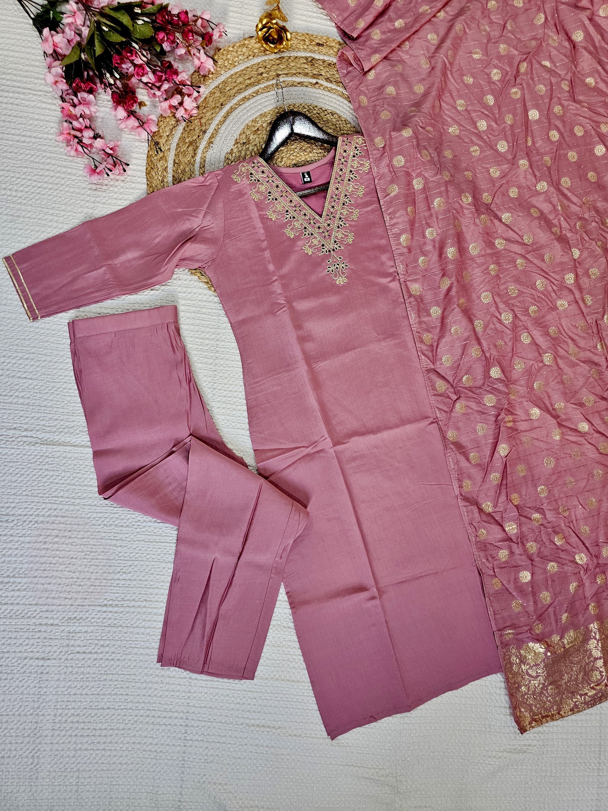 Viscose Chanderi Embroidered Kurta Set with Jacquard Dupatta For Women's