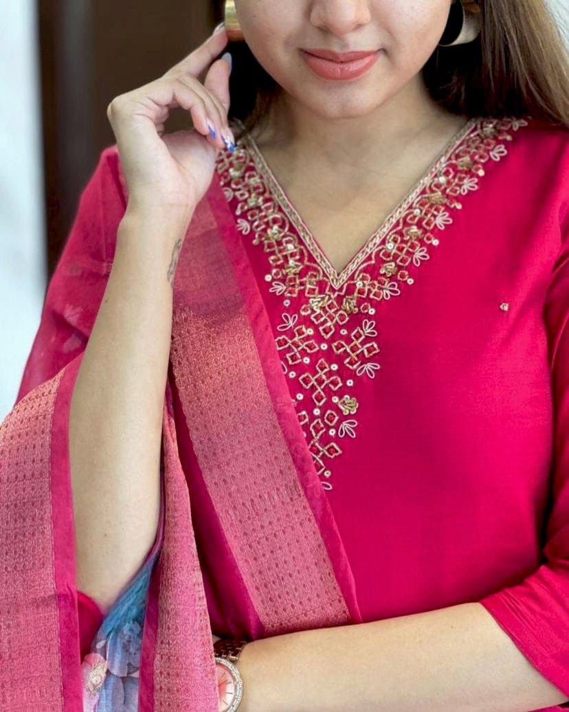 New Traditional Viscose Chanderi Kurta Set with Elegant Detailing Women From Kusum Designer Studio