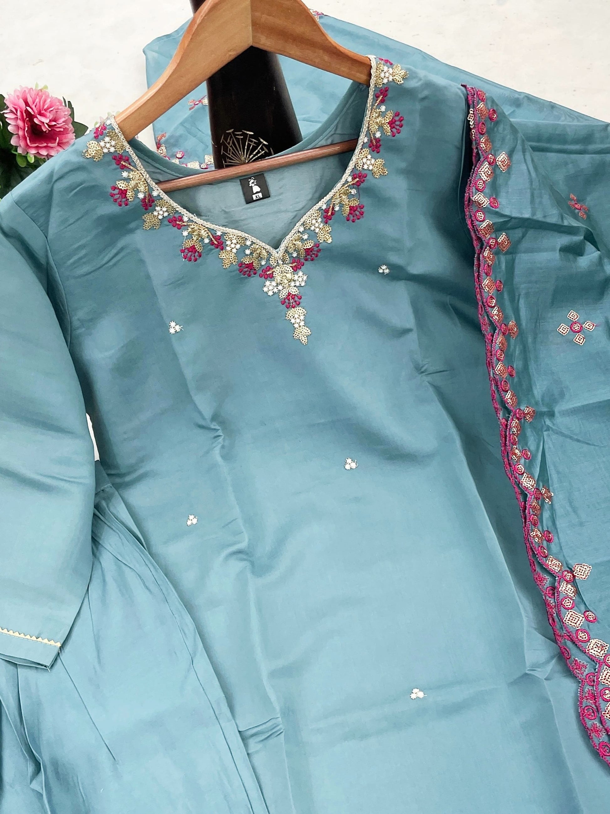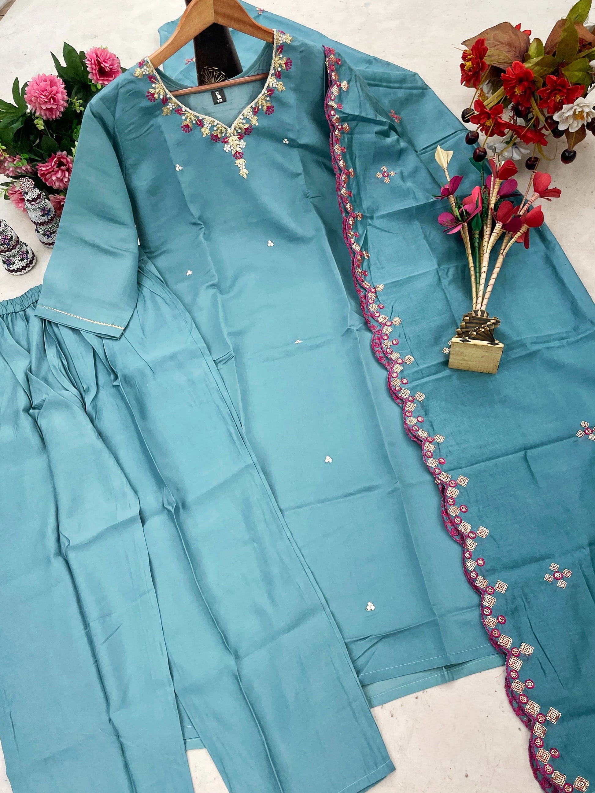Women's Kurta Set – Sky Blue Viscose Chanderi with Dupatta